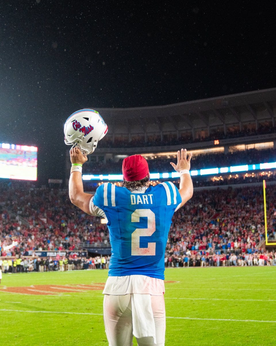 At the end of his on-field interview with McGrath, Kiffin got emotional when asked about the toughness and resiliency of Dart. He was asked again in his postgame press conferencee. Kiffin has stated repeatedly that Dart did more than any single other active player to help recruit this offseason’s portal haul that allowed Ole Miss to assemble a championship-caliber roster.