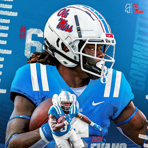 Snoop Conner - there were rumblings of Conner transferring, which made less sense after the Ealy announcement. Conner ended up going in the same direction and will enter the NFL draft. Much like Ealy, I am not a draft expert, but I would want Conner on my 53-man roster doing something. Losing Conner and Ealy is tough, but with the addition of Zach Evans (more on him in a minute) and Quinshon Judkins coming in, the Rebels are fine at running back. Parrish is pretty good too, if you forgot.
